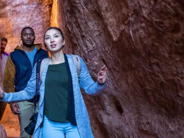 Spend the day discovering Zion National Park. First hike to Scout Lookout, a challenging, but rewarding 4 mile hike which passes through the iconic Walter's Wiggles before reaching the lookout point along a flat saddle with incredible views of the Zion Canyon. Head to the valley floor to trek through the river on one of the most popular hikes in the park, the Narrows. Admire monumental sandstone cliffs of cream, pink, and red that tower into the sky and opt to turn around at any point. Experience diverse plant and animal life in this narrow slot canyon as the park transitions from desert to forest. Gaze at the awe-inspiring beauty of the high plateaus, striking towers, temples, mesas, and the earth's tallest-known sheer sandstone walls. After returning to camp, head into the charming town of Springdale to celebrate the accomplishments of the last week.