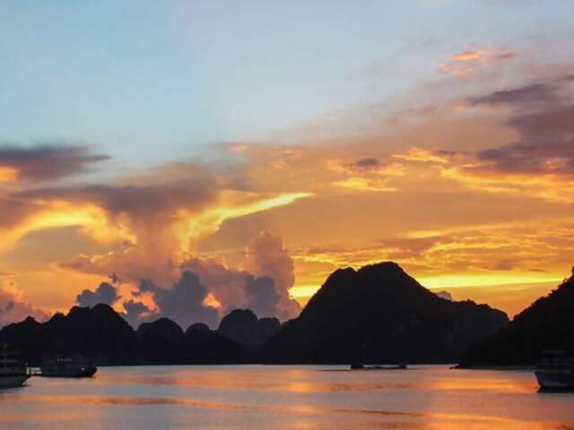Halong Bay cruise, cave visit and island lookout. Seafood lunch and dinner.